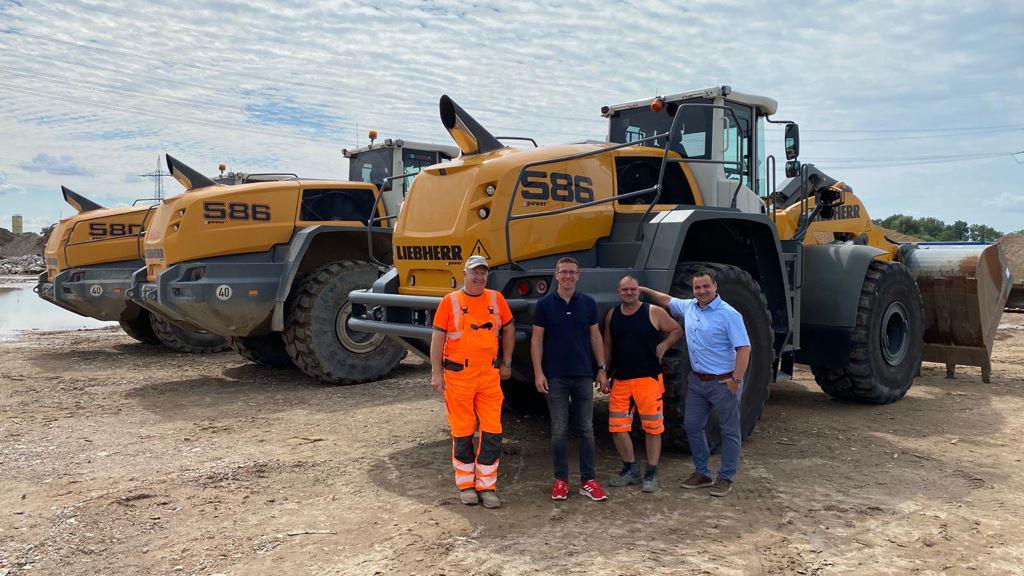 Bei der Maschinenübergabe (v.l.n.r.): Maschinenführer Michael Gerisch, Firmengründer und Geschäftsführer Thomas Meyer, Maschinenführer Ringo Schulz (alle Meyer Erdbau GmbH bzw. Meyer Recycling GmbH), Marcus Morgner (Liebherr-Baumaschinen Vertriebs- und Service GmbH Berlin) - (C) Liebherr-Werk Bischofshofen GmbH